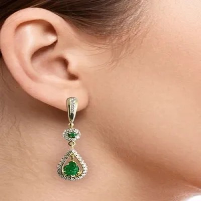 первая страница > Ювелирные изделия > G.st. ЮВЕЛИРНЫЙ ЗАВОД ЗОЛОТОЙ СТАНДАРТ Серьги из желтого золота с натуральными изумрудами и бриллиан