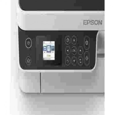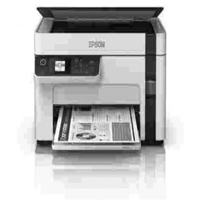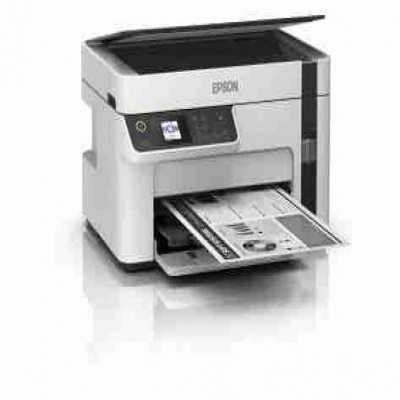 МФУ струйное Epson M2120 выполняет функции принтера, сканера и копировального аппарата. Настольный прибор черно-белой печати на листах A4 подходит для домашнего или офисного применения. Оборудование действует со скоростью 15 стр/мин при получении изображения с разрешением 1440x720 dpi. Комфортной работе способствует наличие СНПЧ. Модель Epson M2120 дополнена планшетным сканером и копиром, действующими с разрешением 1200x2400 dpi. МФУ с одним картриджем дополнено USB-портом Type-B и модулем Wi-Fi для работы с мобильными технологиями печати. Комплектация включает кабель питания, контейнер с чернилами и установочный диск.