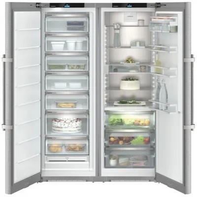Дизайн и практичностьС моделями Side-by-Side от Liebherr Вы сможете комфортно хранить еще больше свежих и замороженных продуктов. Оптимальный выбор для большой семьи или для тех, кто не любит часто ходить в магазин!Зона свежести BioFreshВнутри контейнеров BioFresh поддерживается температура, которая близка к 0°С и высокая влажность – это оптимальные условия для хранения овощей и фруктов. В контейнере с низкой влажностью можно разместить мясо, сыры и другие молочные продукты.Сенсорный дисплейСенсорный дисплей с высоким разрешением и контрастом установлен за дверью. Он позволяет осуществлять интуитивно понятную настройку температуры и выбирать необходимые функции за несколько касаний. Динамическое охлаждениеВ системе PowerCooling используется мощный и тихий вентилятор, который обеспечивает активную циркуляцию воздуха, за счет этого внутри холодильника устанавливается равномерная температура, а угольный фильтр FreshAir попадание посторонних запахов во внутреннее пространство.Задняя стенка из нержавеющей сталиНержавеющая сталь с покрытием SmartSteel на задней стенке обеспечивает устройствам необычный и притягательный внешний вид. Такая поверхность является безопасной для еды, а еще на ней практически не остаются отпечатки пальцев.Колонны LightTowerДве LED-колонны наполняют внутреннее пространство холодильника белым светом. Во время работы они практически не выделяют тепло, потребляют мало энергии, обеспечивают оптимальный обзор и великолепный внешний вид.Контейнер для мелочейКонфигурируйте холодильник под продукты и емкости практически любого размера - для мелочей всегда найдется место. Контейнер VarioSafe оптимален для небольших продуктов и различных баночек.Комфорт в деталяхПланируете охладить чуть больше напитков, чем обычно? В устройствах с зоной свежести BioFresh для этого предусмотрена специальная полка. Для ее использования достаточно легким движением руки поднять стеклянную панель и расположить там бутылки, вскоре после этого они будут охлаждены и готовы к подаче.Контейнер SpaceBox в морозильной камереТеперь в морозильной камере можно комфортно разместить объемные продукты. С контейнером SpaceBox вы заморозите ту еду, которую нельзя расфасовать, например, целую индейку или большой торт. Контейнер с высотой 250мм позволяет легко их расположить!Ручка с толкателемНовая ручка с интегрированным механизмом толкателя позволяет открывать дверь практически без усилий. Её конструкция стала прочнее, а утонченный и элегантный дизайн будет оптимально гармонировать с различными интерьерами.Доводчики SoftSystemДоводчики SoftSystem позволяют закрывать дверь плавно и непринужденно, обеспечивая мягкость даже при резком закрытии и полной загрузке полочек. Бутылки и продукты будут находиться в спокойствии и не сдвинутся с места.Немецкое качествоПри разработке холодильного оборудования мы учитываем многолетний опыт наших инженеров и различные сценарии использования. Из-за этого наша техника получается инновационной, сбалансированной и удобной!
